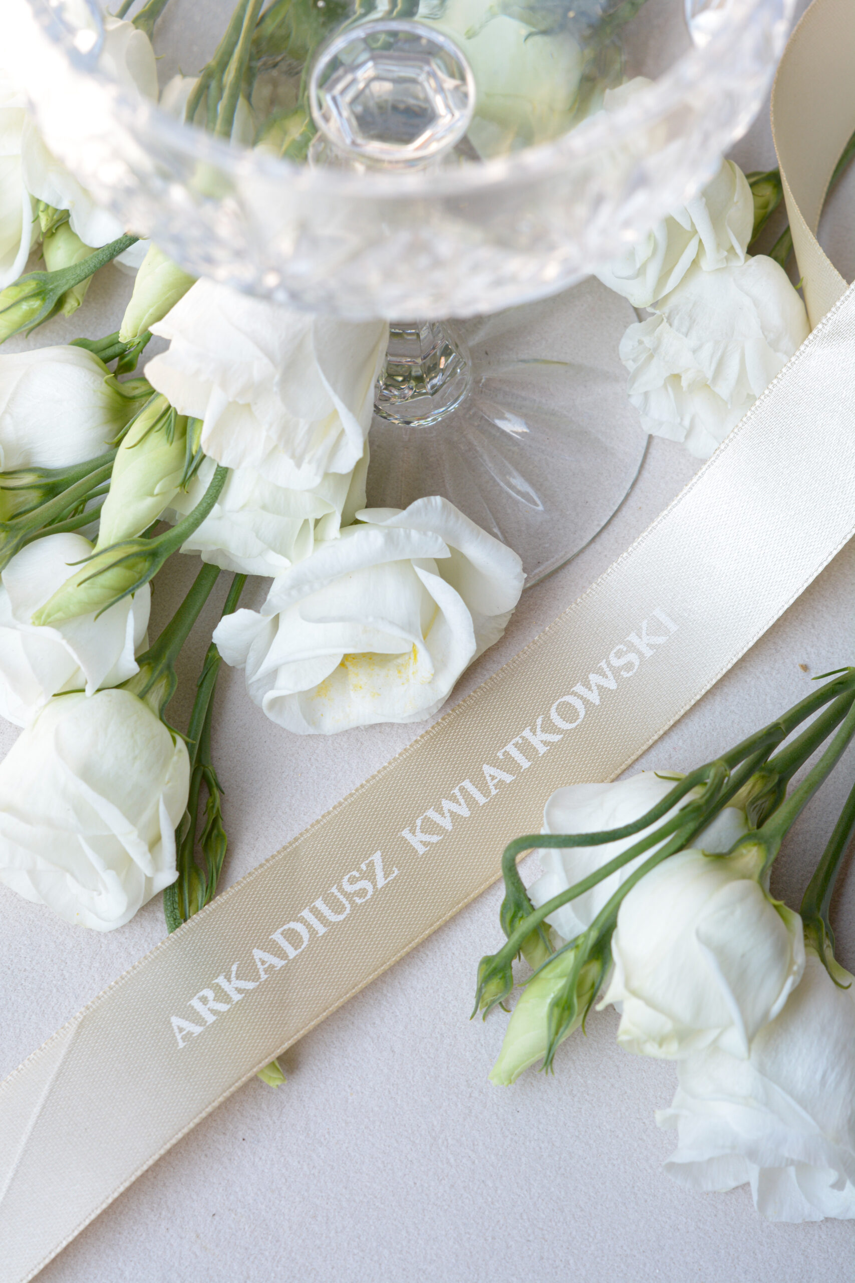 Beżowe winietki ślubne na wstążce satynowej WI-58
