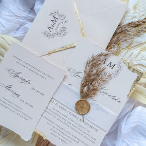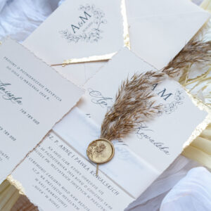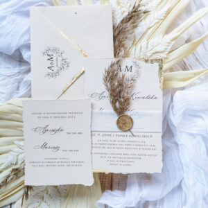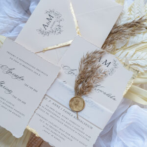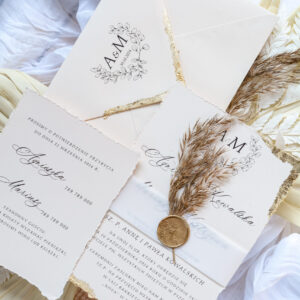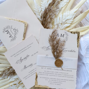 Beżowe zaproszenia ślubne z trawą pampasową Wz-37