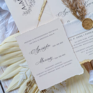 Po zadeklarowaniu żądanej ilości zaproszeń należy kliknąc przycisk DODAJ DO KOSZYKA. Dalej należy wybrać formę dostawy oraz opłacić zamówienie. Po zakupie dostaną Państwo meila z linkiem do szczegółowego formularza zaproszeń ślubnych. Na podstronie JAK ZAMWIAĆ mogą się Państwo zapoznać z takim przykładowym formularzem do zaproszeń. W formularzu proszę o podanie szczegółowych informacji tj. imię i nazwisko, data ślubu, godzina ślubu, miejscowość w której odbędzie się uroczystość, kościół ( pełna nazwa), miejsce przyjęcia weselnego jeśli życzą sobie Państwo, aby na zaproszeniu znajdowało się potwierdzenie przybycia to proszę również o numery telefonów. Istnieje możliwość spersonalizowania zaproszeń, w tym przypadku proszę o przesłanie listy gości w odmienionych i gotowych formach. Lista gości do zaproszeń powinna być przesłana w formie odpowiadającej treści, zazwyczaj należy ją odmienić. Dokładnie sprawdźcie poprawność wszystkich danych włącznie z imionami i nazwiskami gości oraz ich odpowiednią odmianą. Warto pamiętać o kupnie kilku sztuk zaproszeń awaryjnych do ręcznego wpisania gości. Późniejsze domówienie zaproszeń jest możliwe, jednak minimum to 20 sztuk.