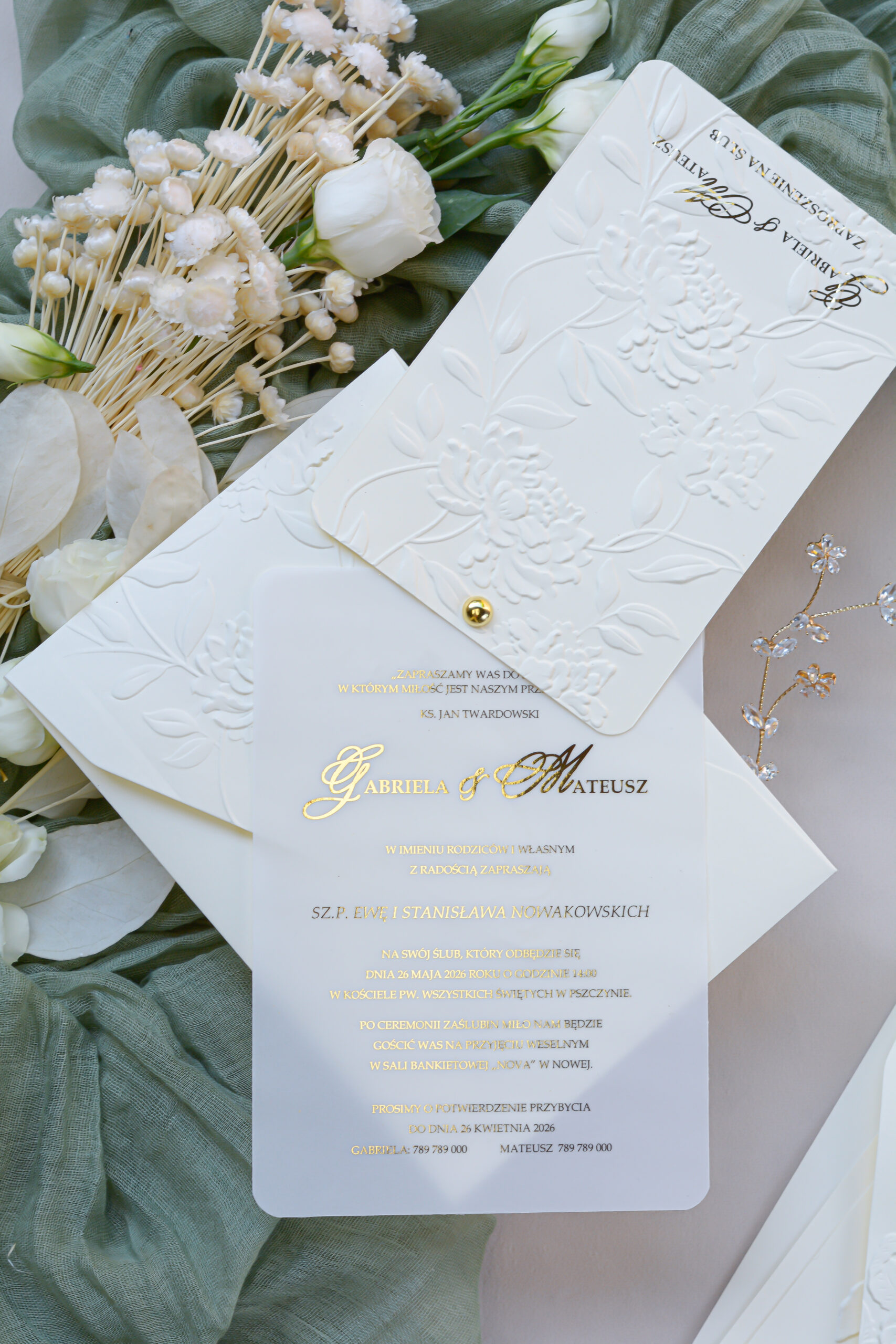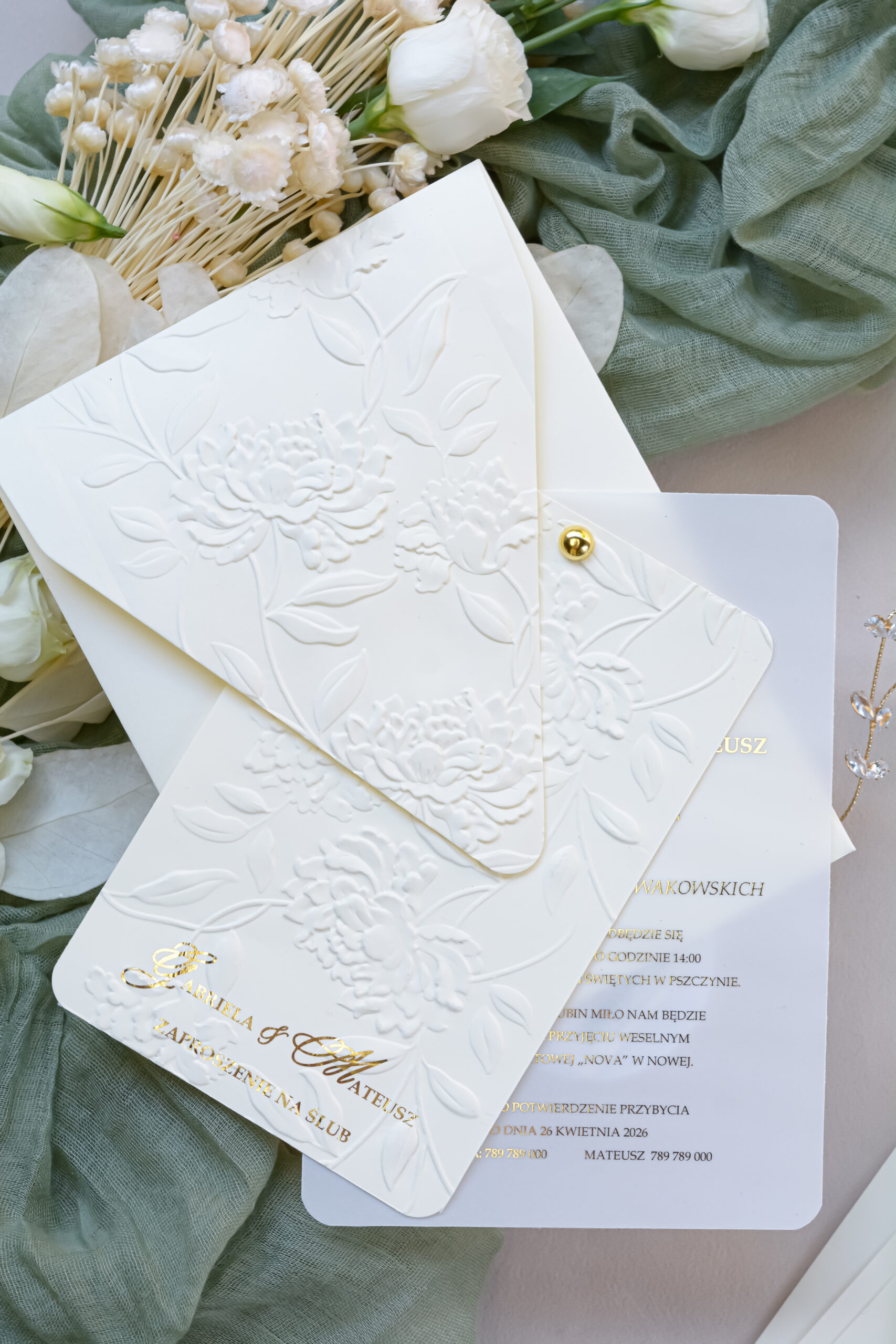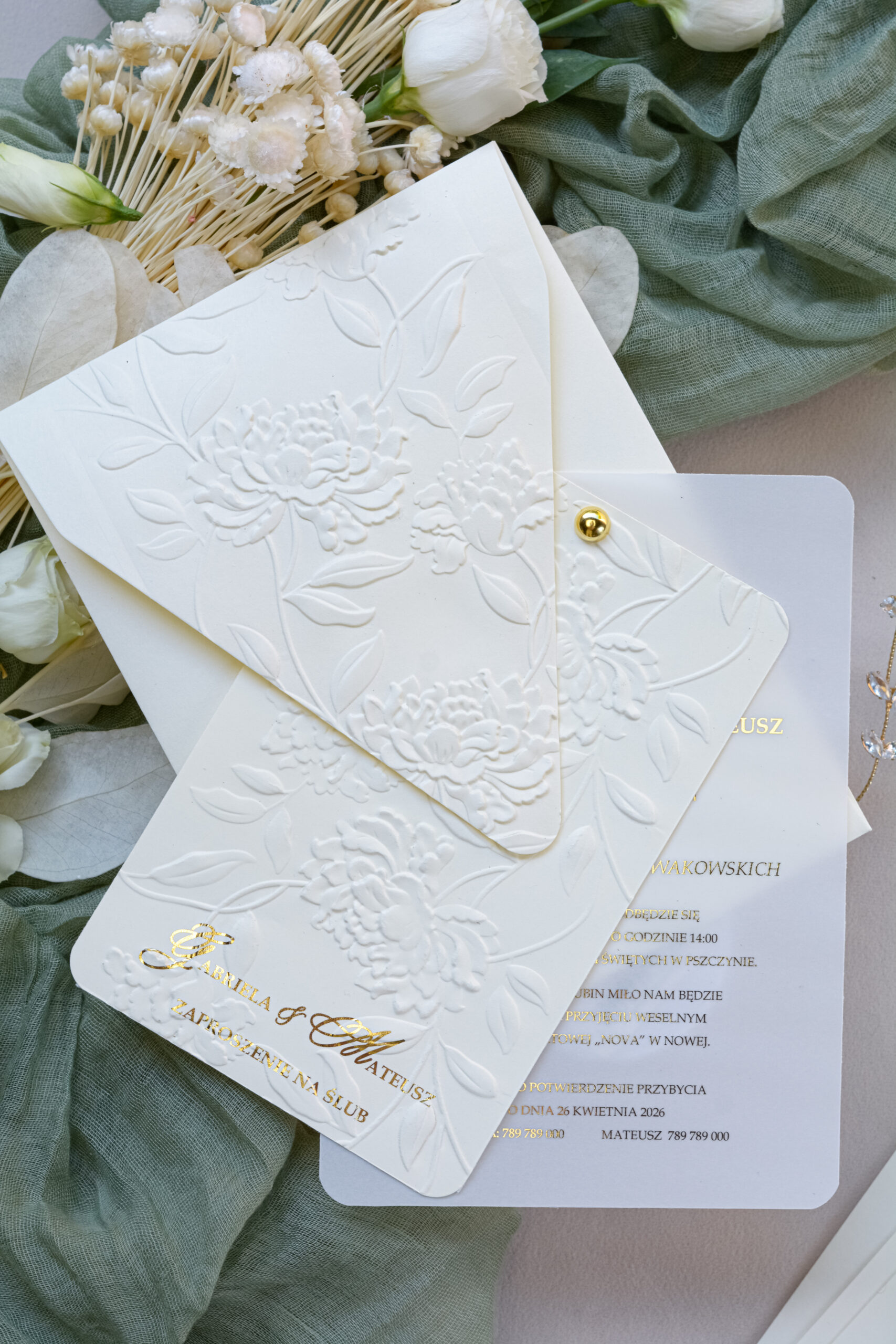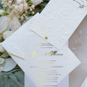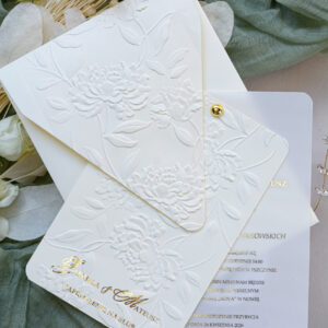 Kremowe zaproszenia ślubne z tłoczeniem Wz-174
