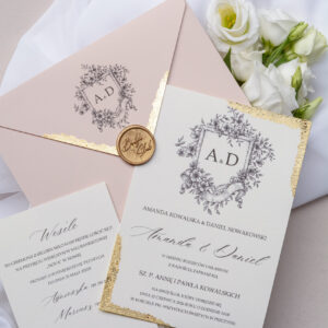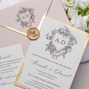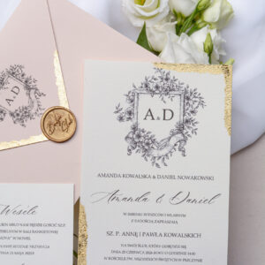 Minimalistyczne zaproszenia ślubne ze złoceniem Wz-113