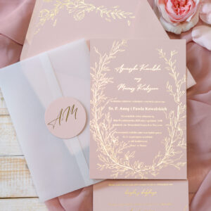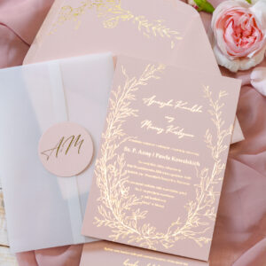 Minimalistyczne złocone zaproszenia ślubne Wz-57