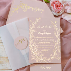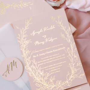 Różowe zaproszenia ślubne z tłoczeniem Wz-178