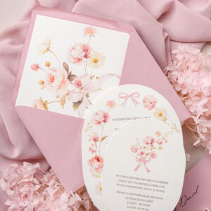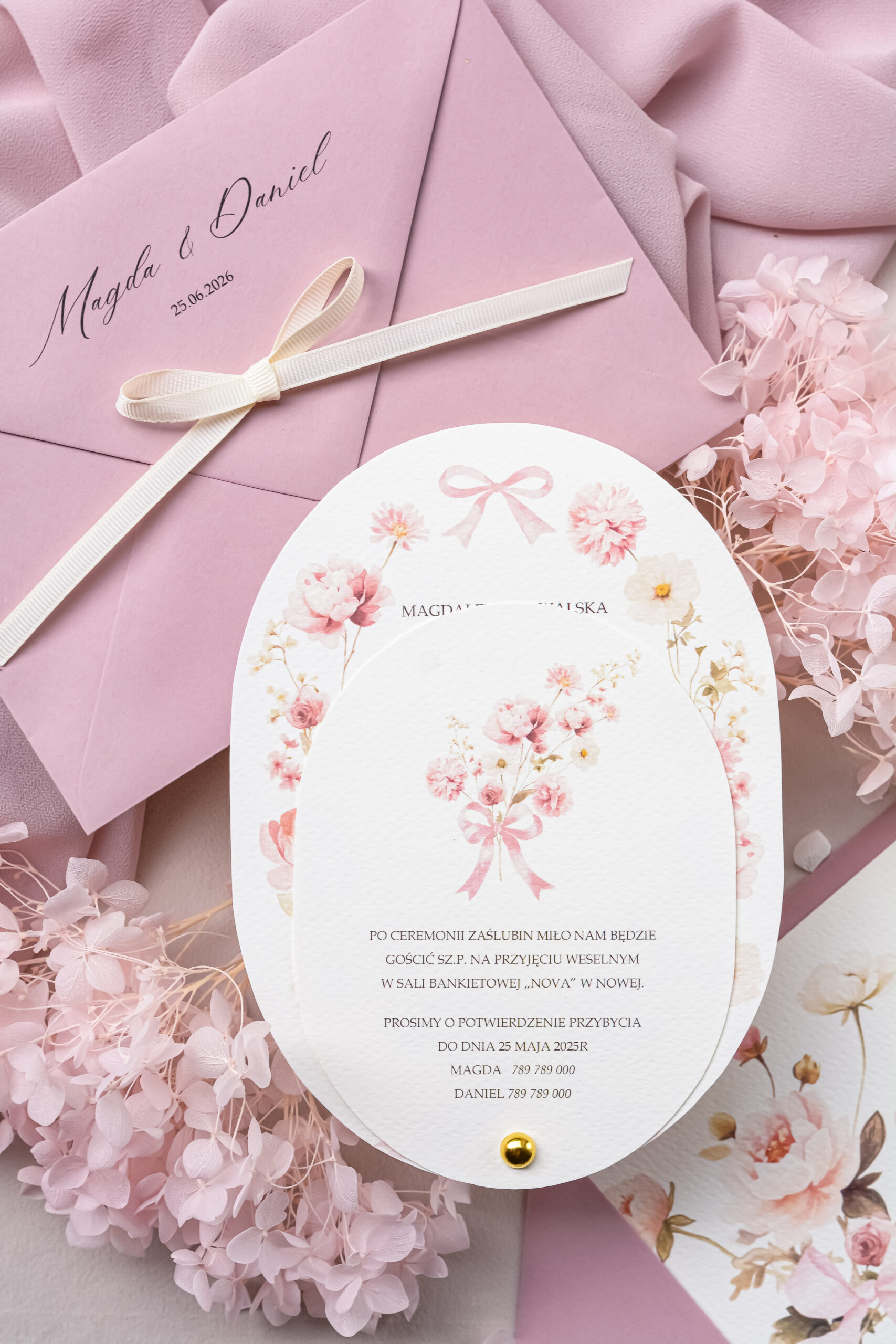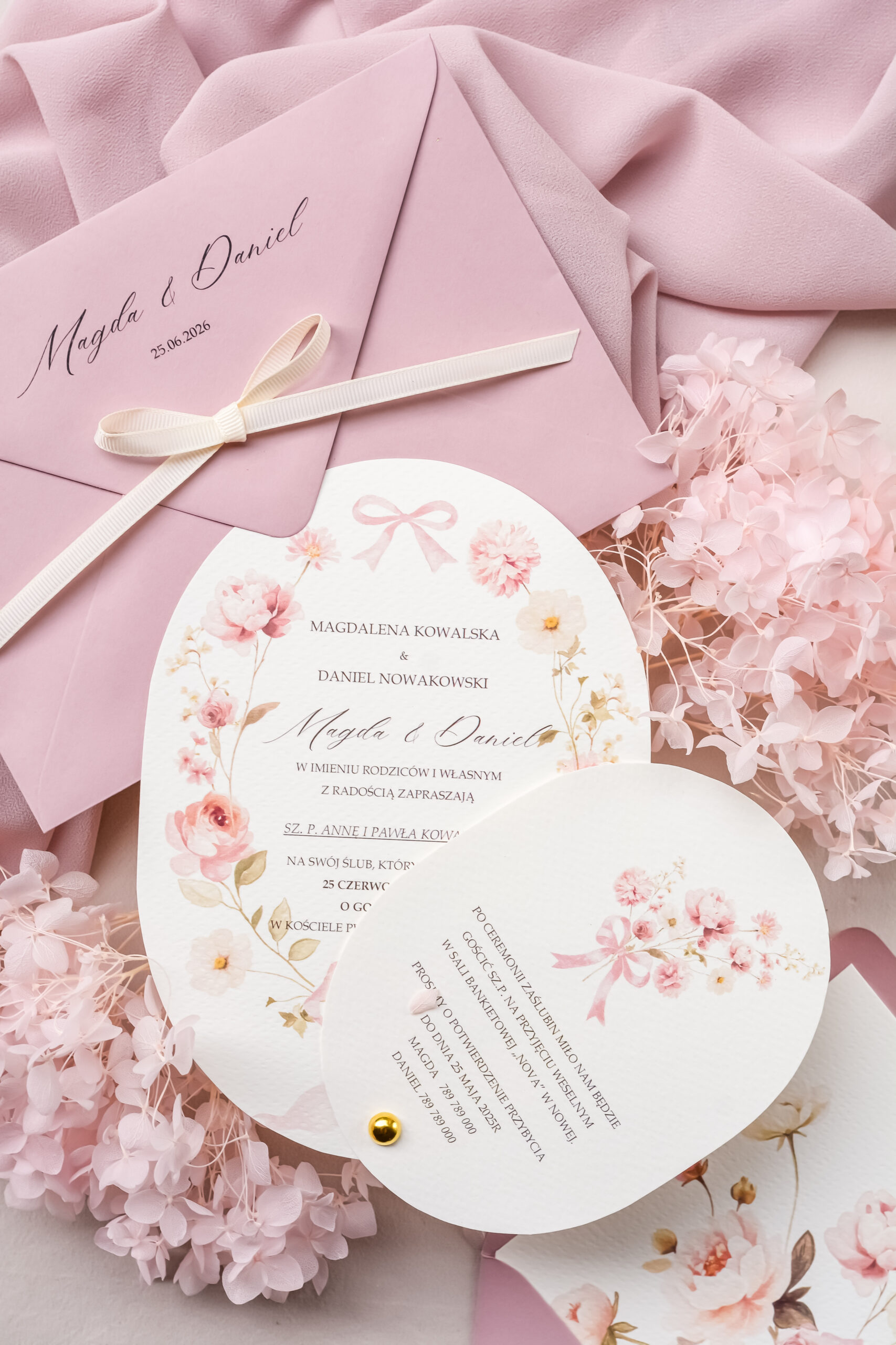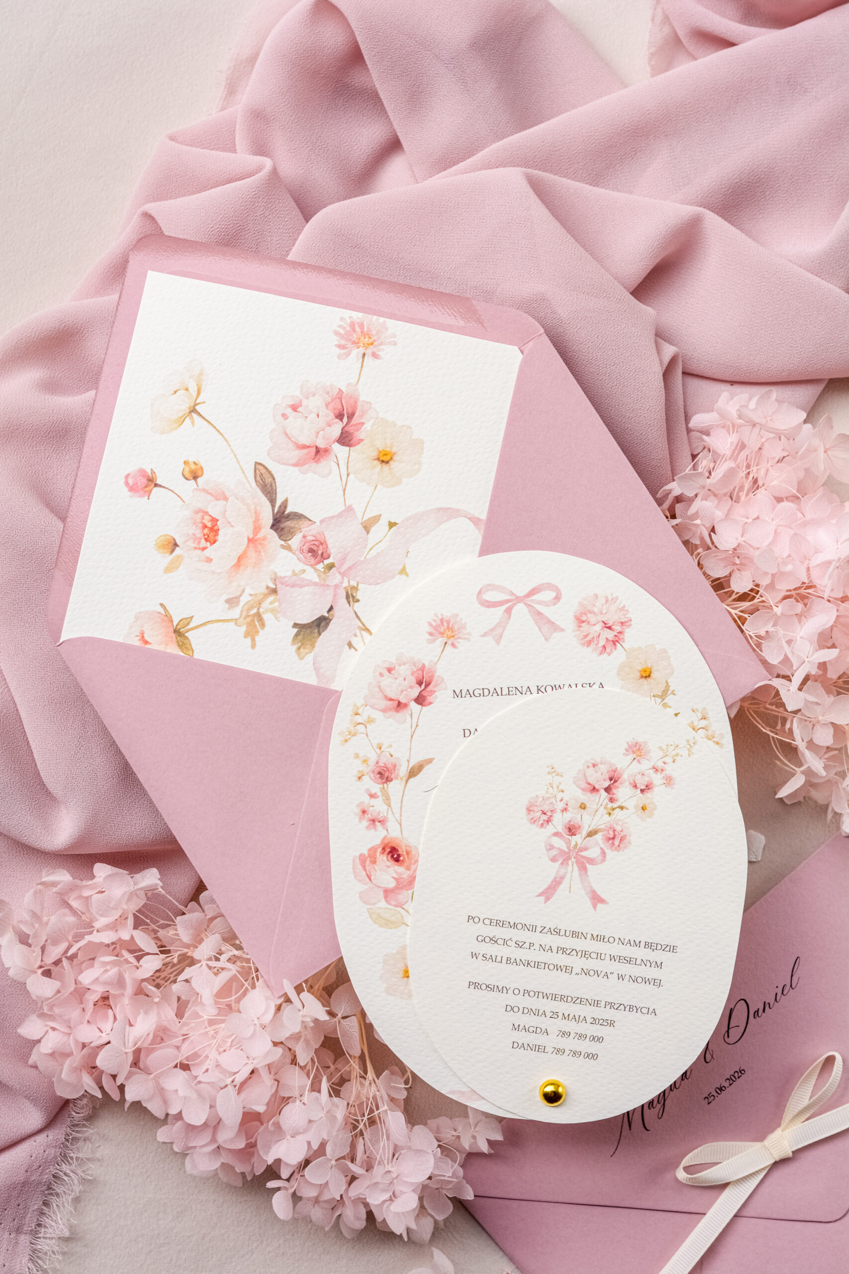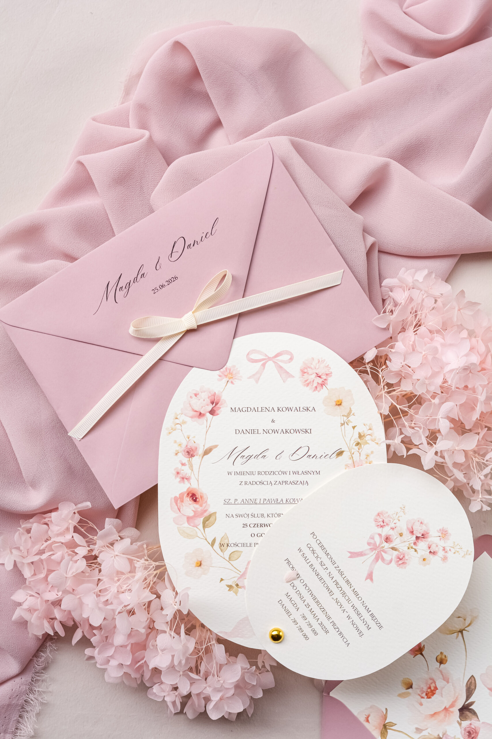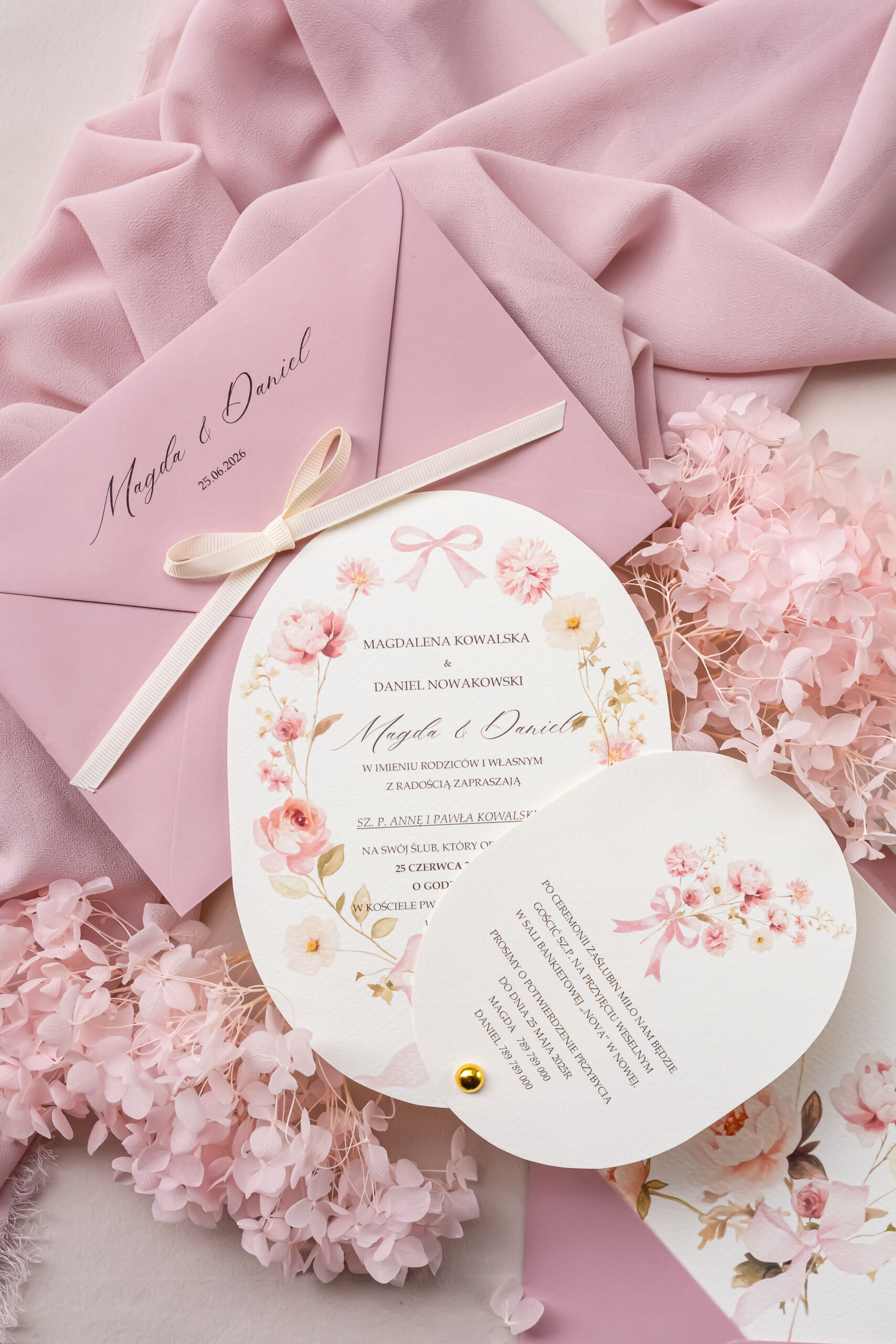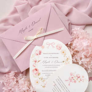 Różowe zaproszenia ślubne z tłoczeniem Wz-178
