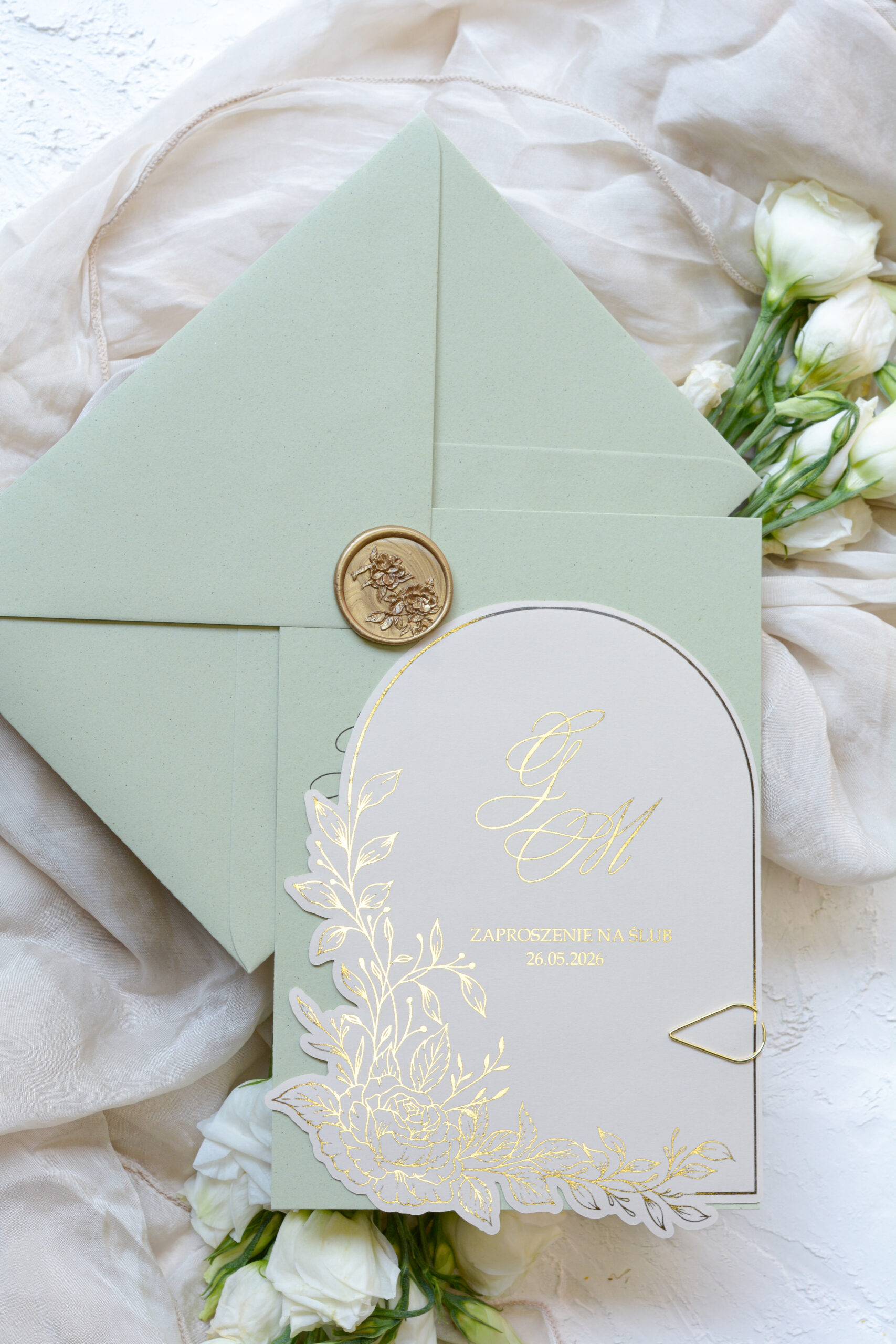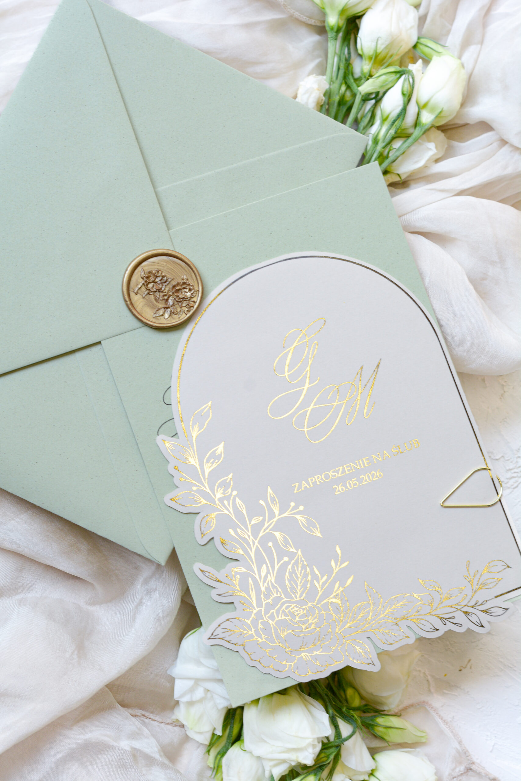 Oliwkowe zaproszenia ślubne Wz-143