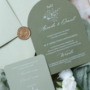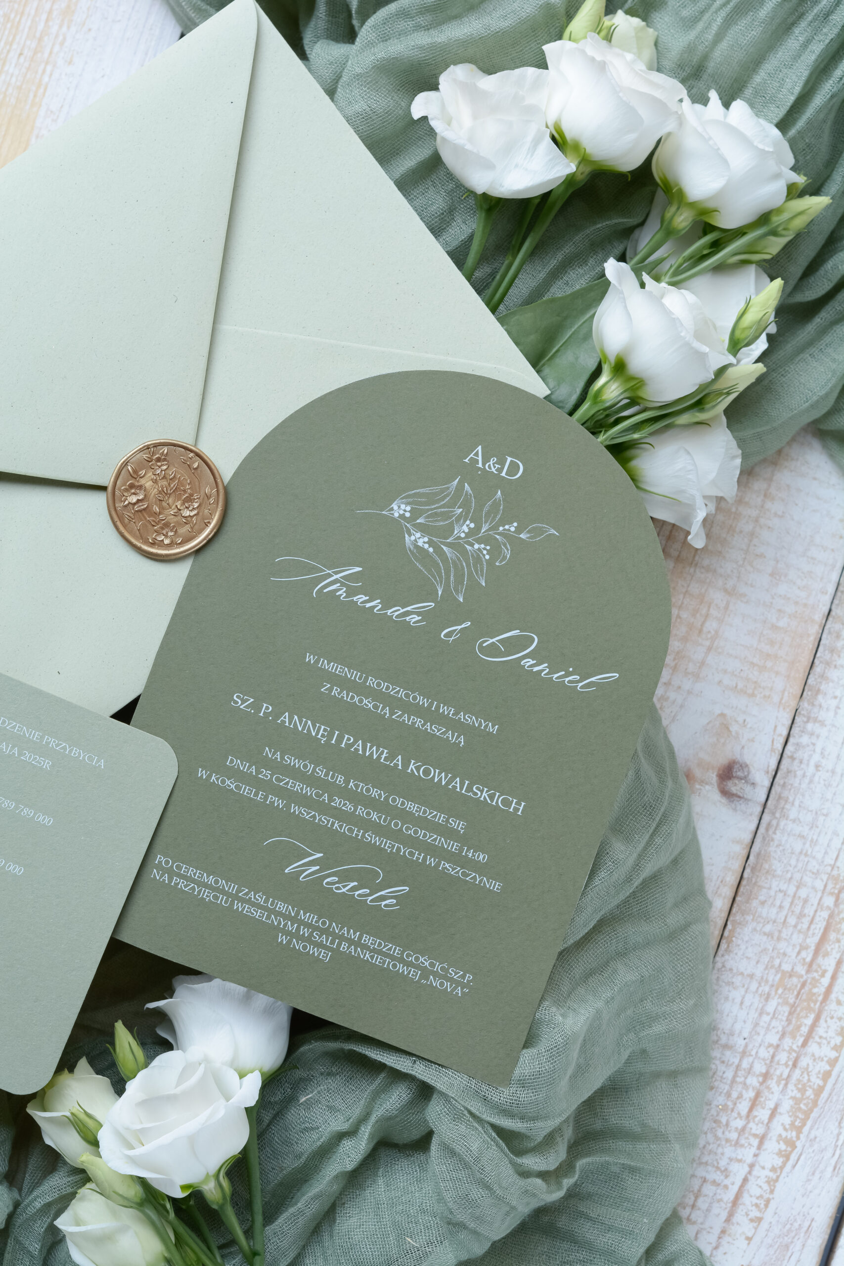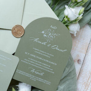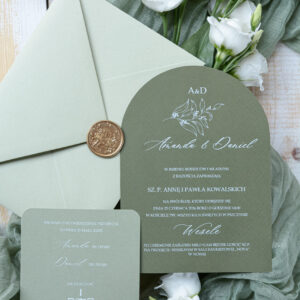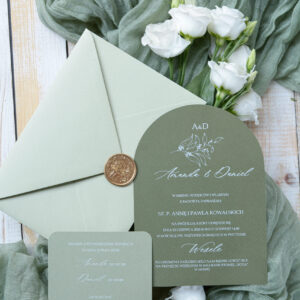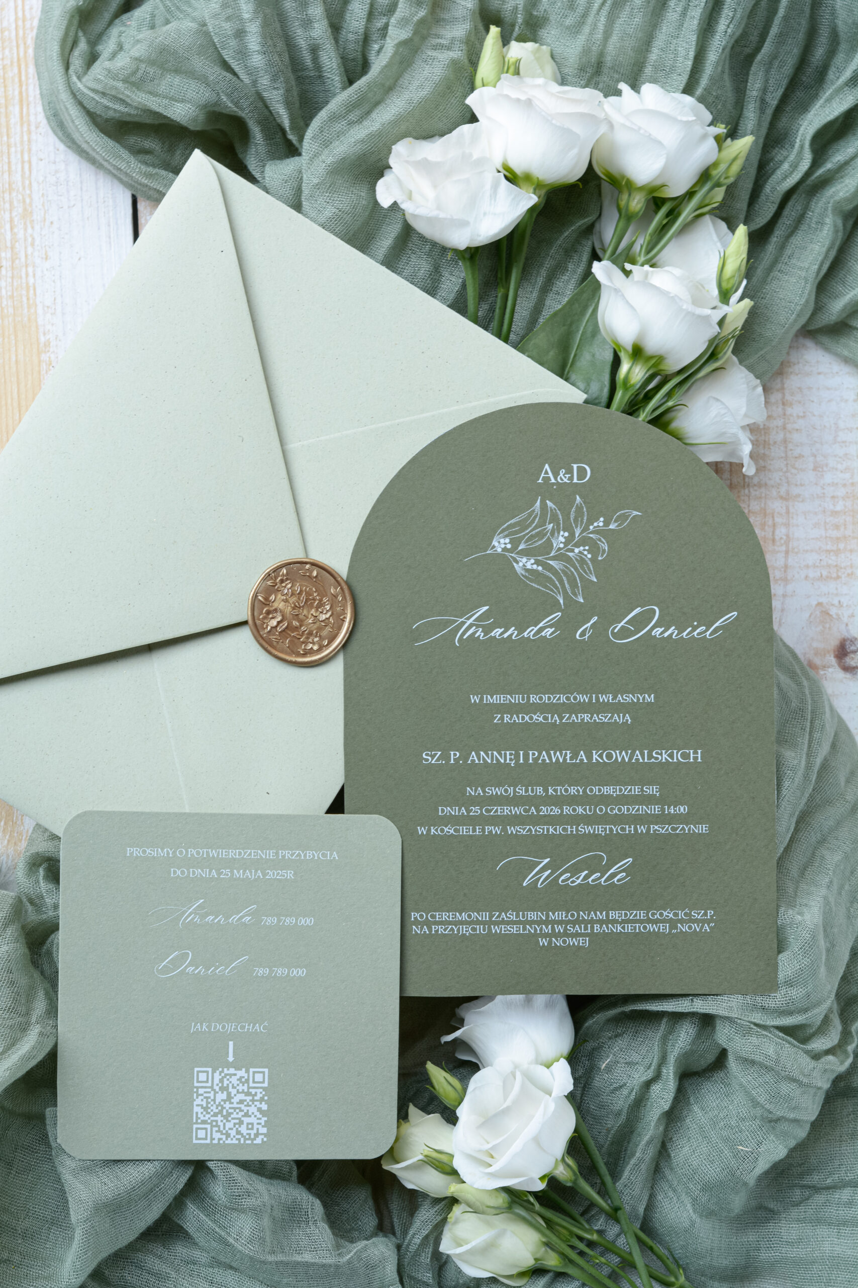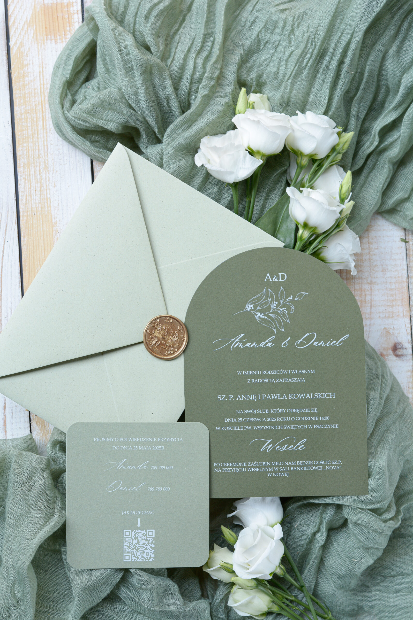 Minimalistyczne, oliwkowe zaproszenia ślubne Wz-175