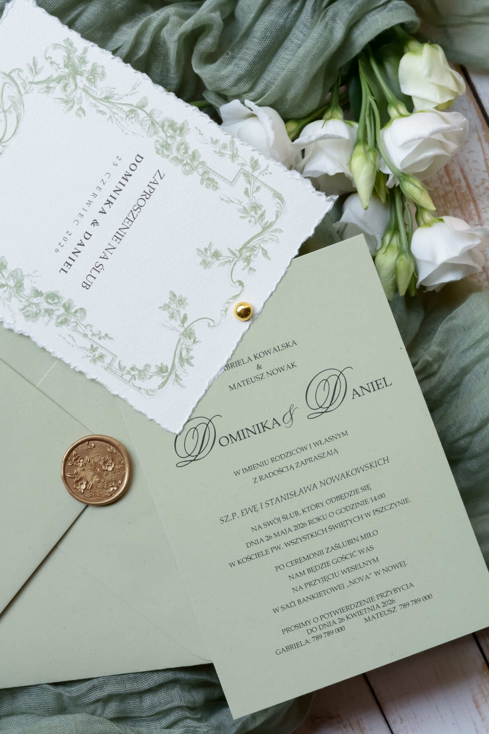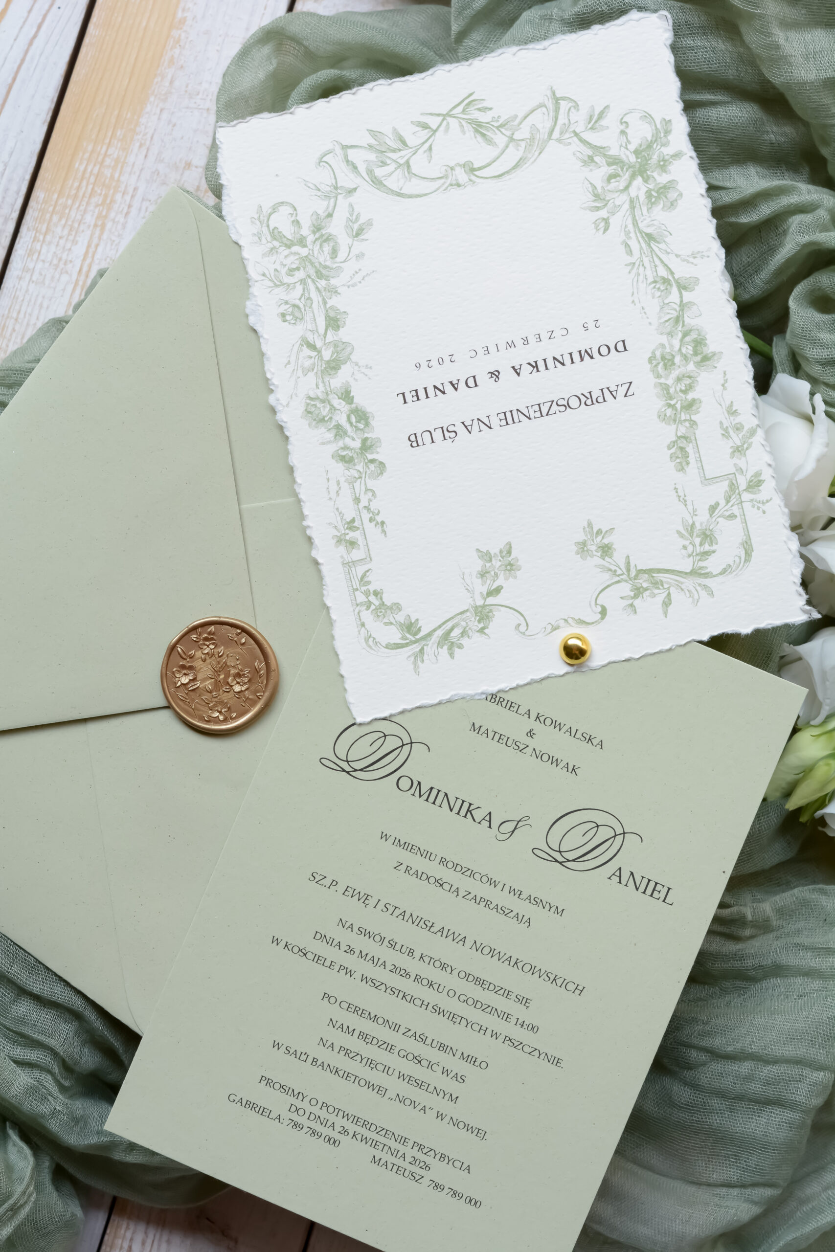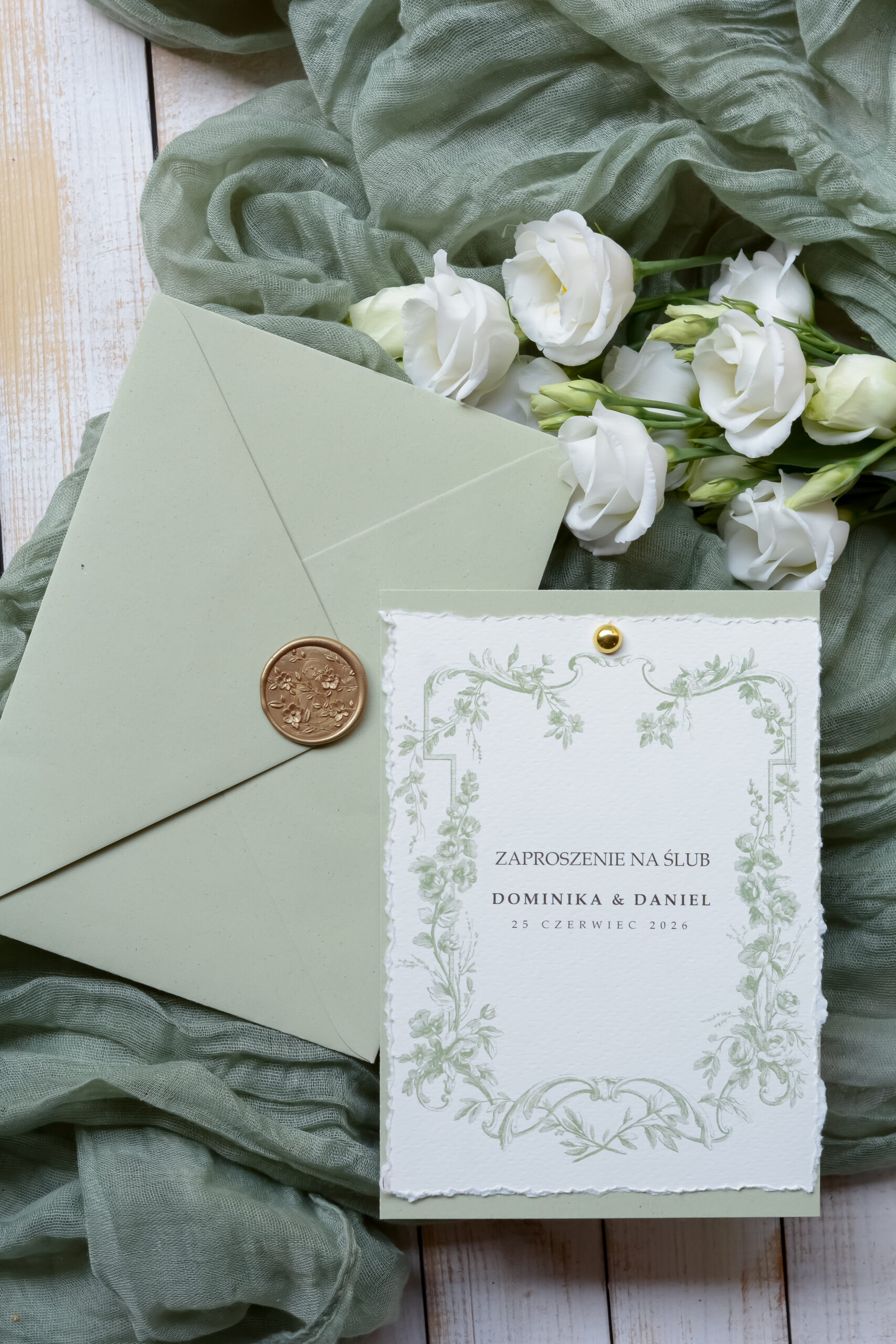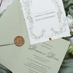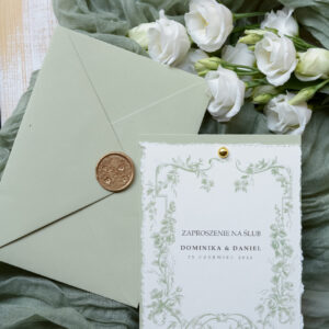 Minimalistyczne, oliwkowe zaproszenia ślubne Wz-175