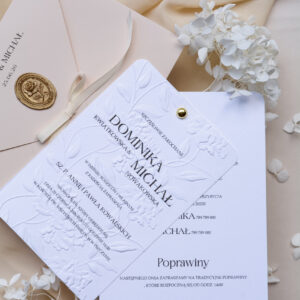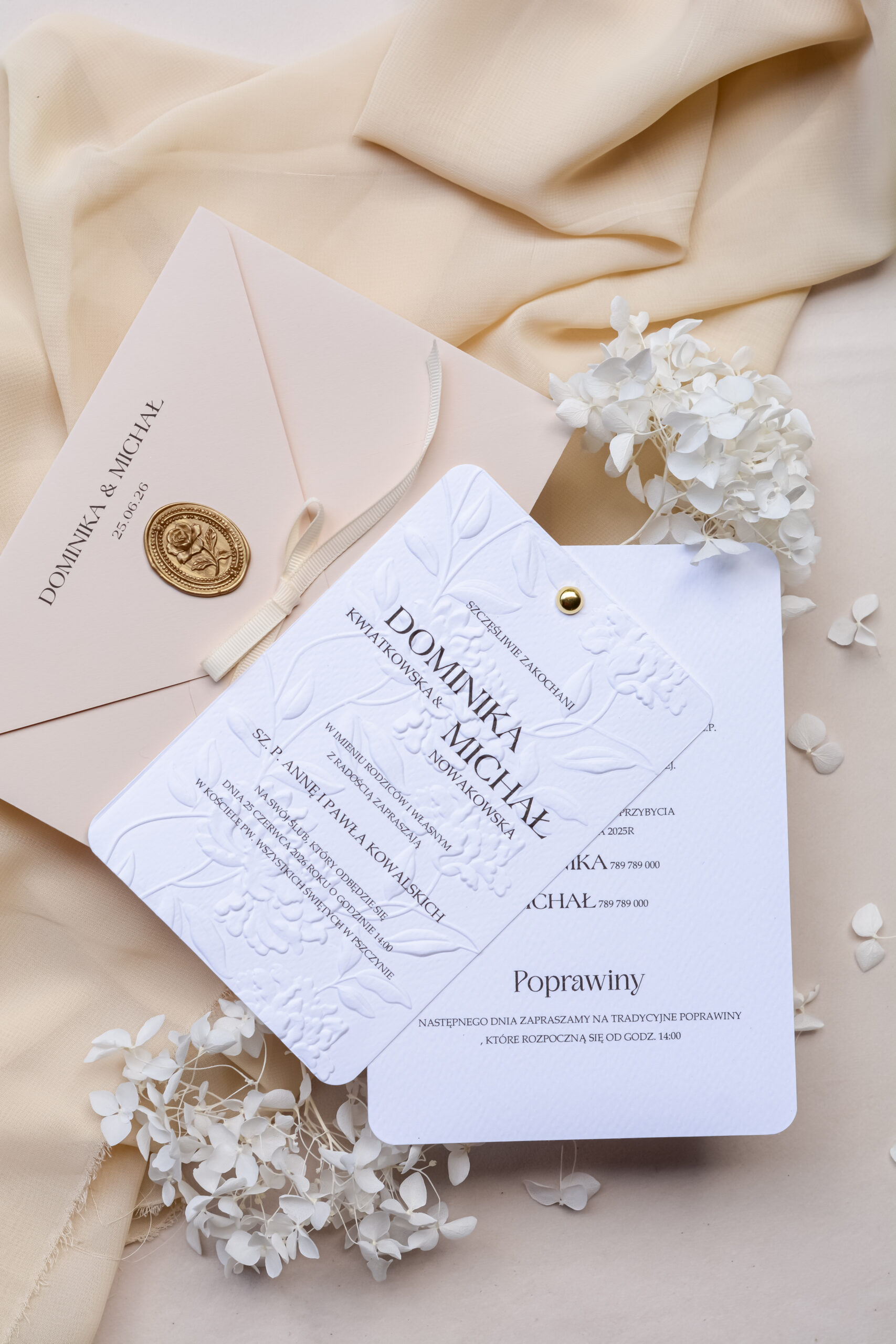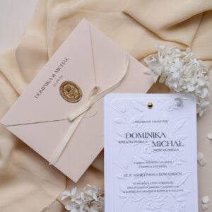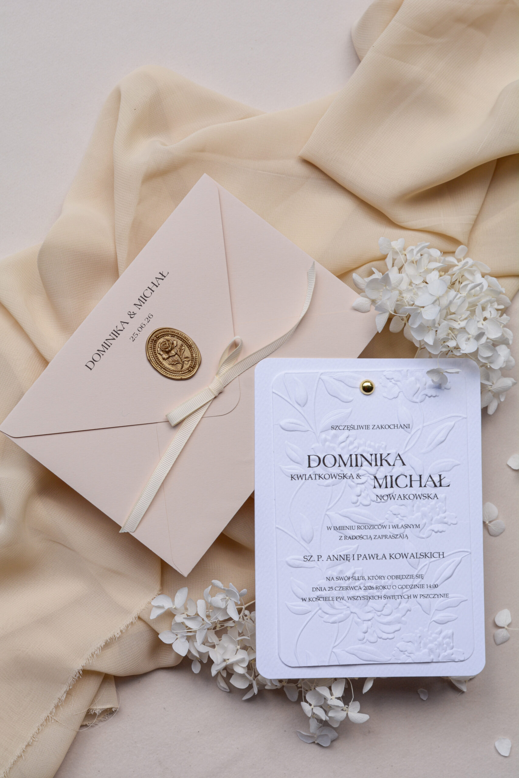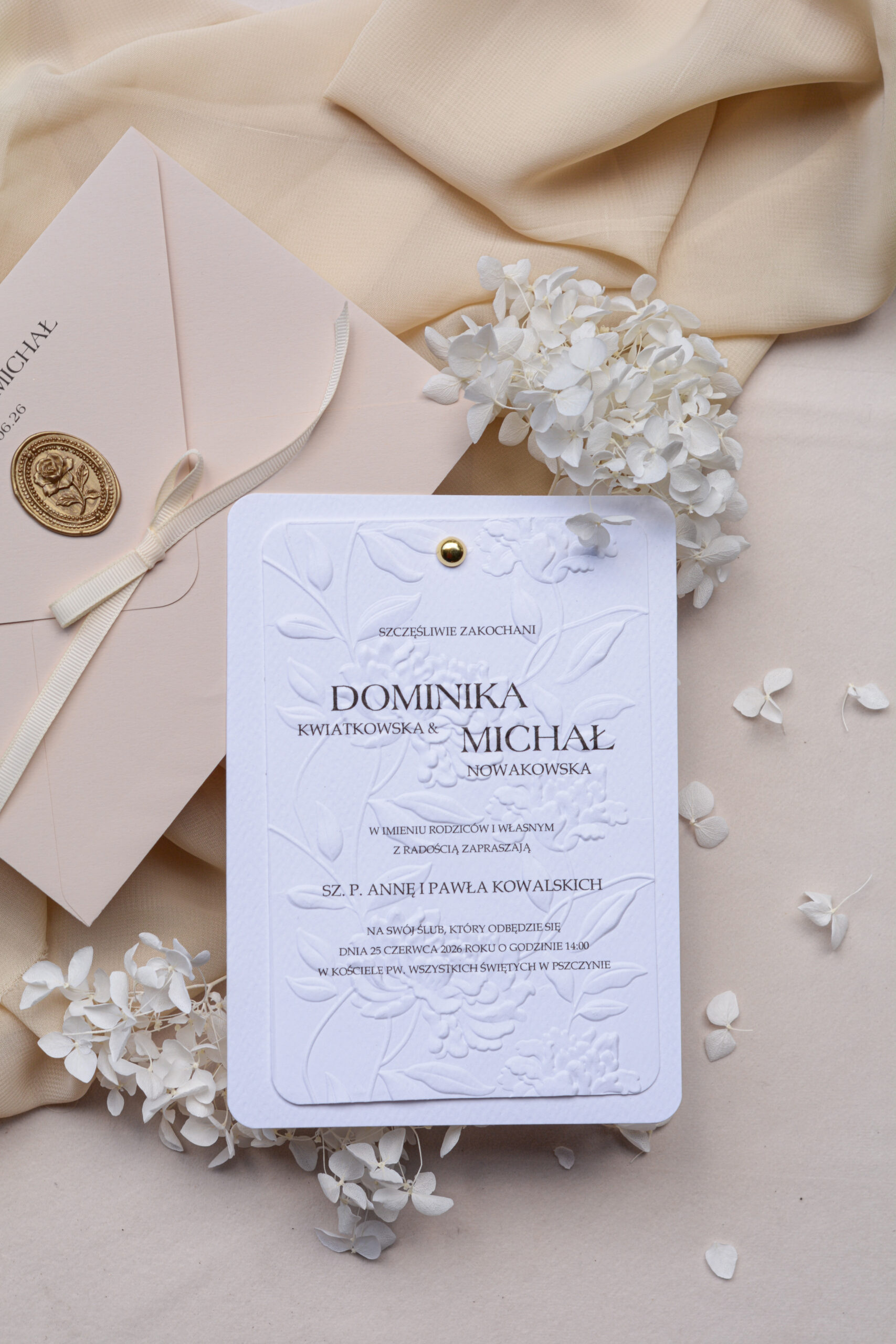 Kremowe zaproszenia ślubne z tłoczeniem Wz-177