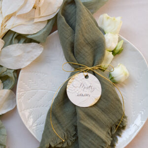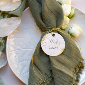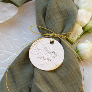 Do winietek przesyła się tylko nazwiska gości. Można to zrobić w uwagach (obok adresu do wysyłki) podczas składania zamówienia lub e-mailem na kontakt@nina-wedding.pl