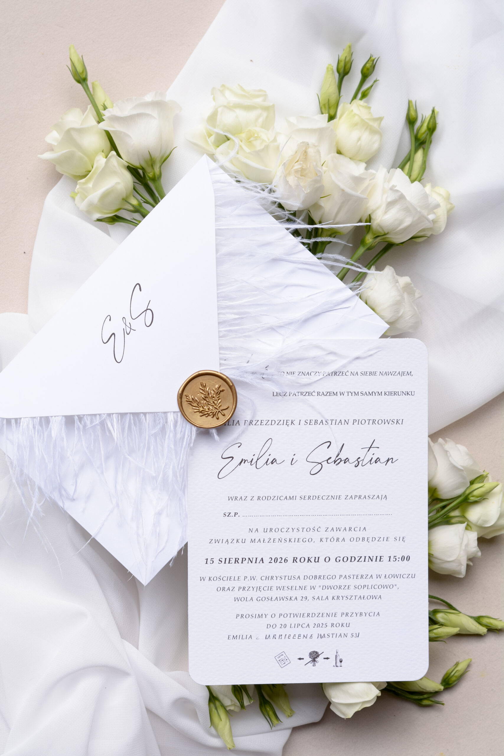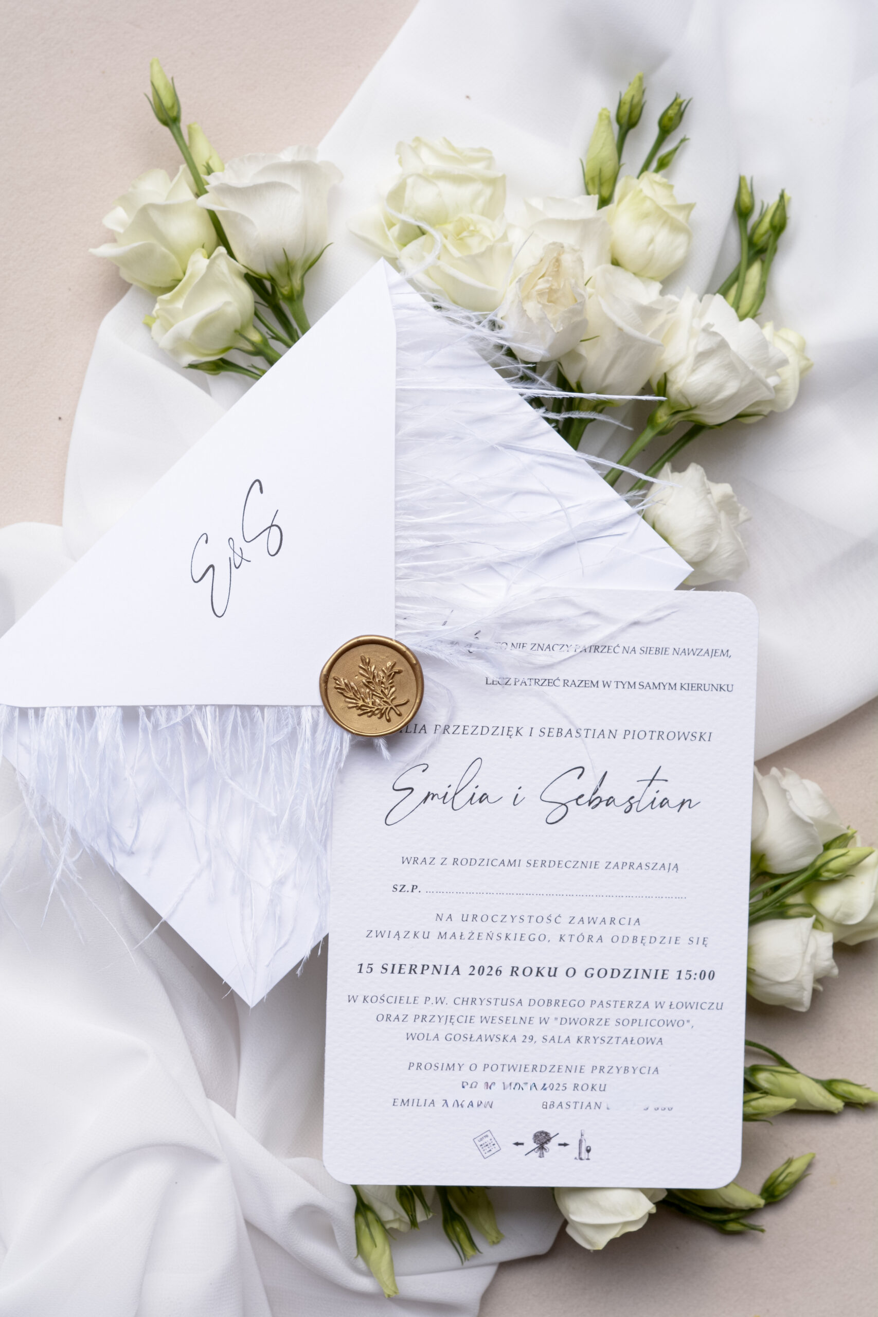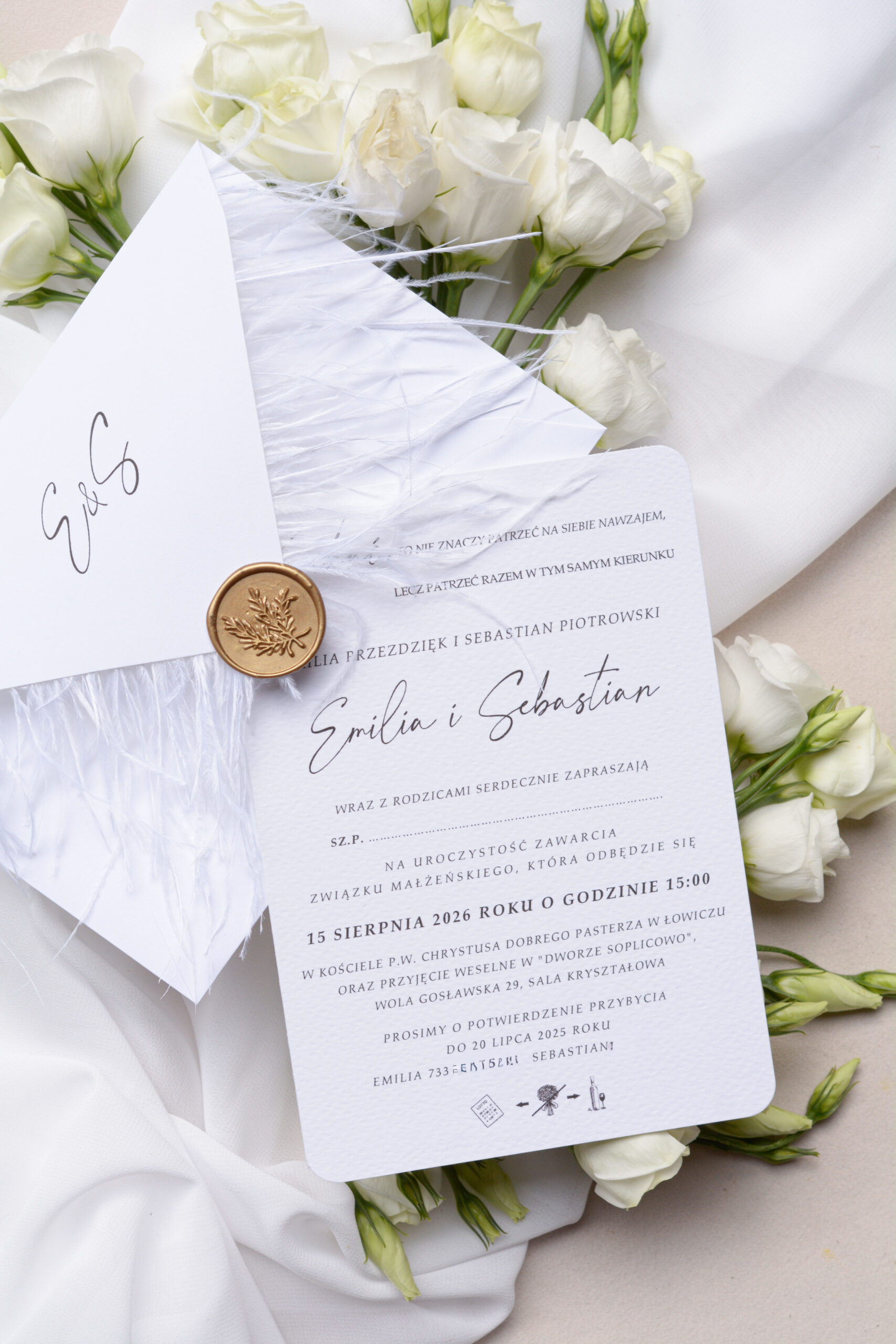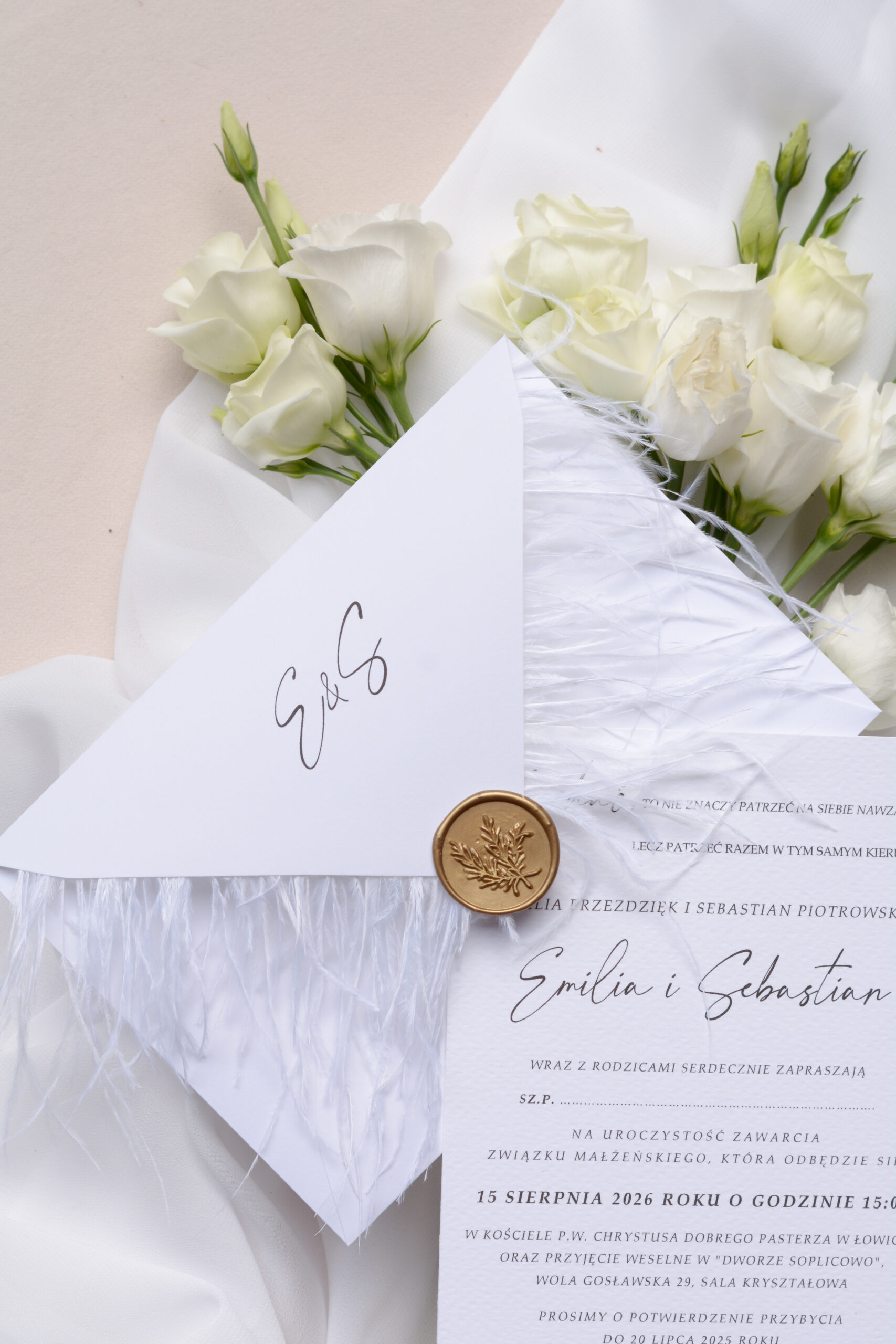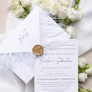 Zaproszenia ślubne z piórami, strusie pióra Wz-126