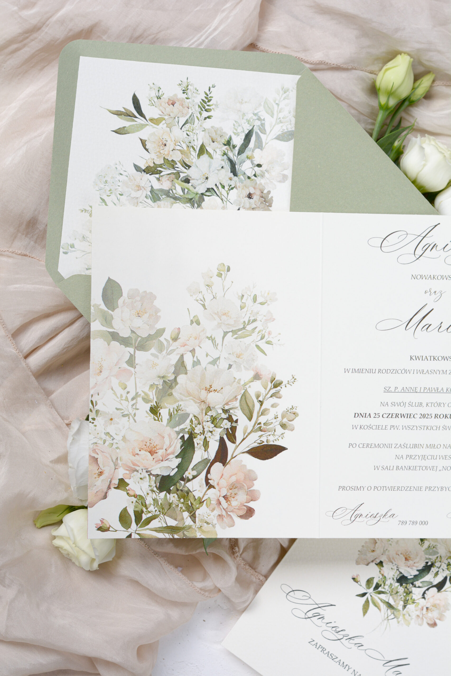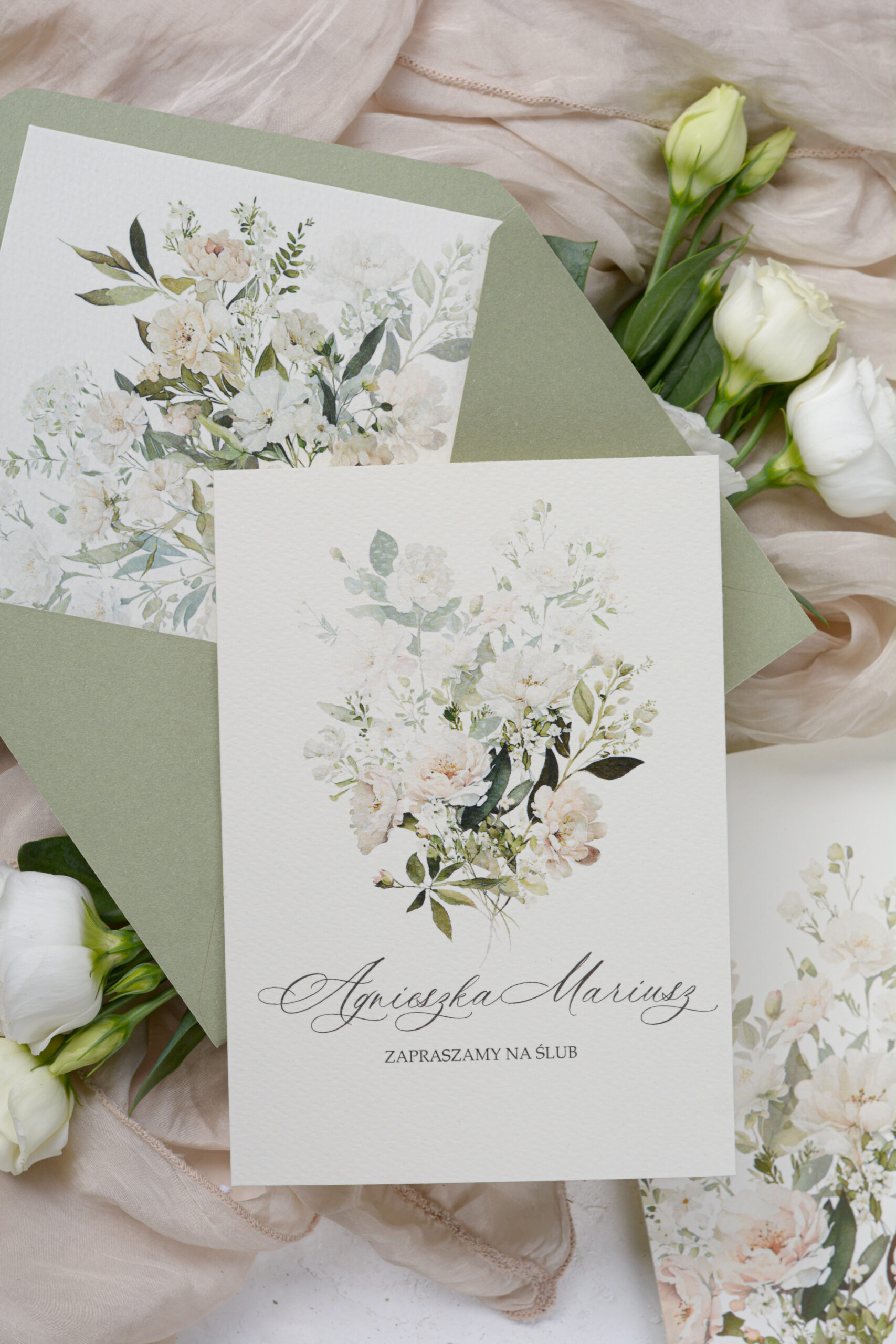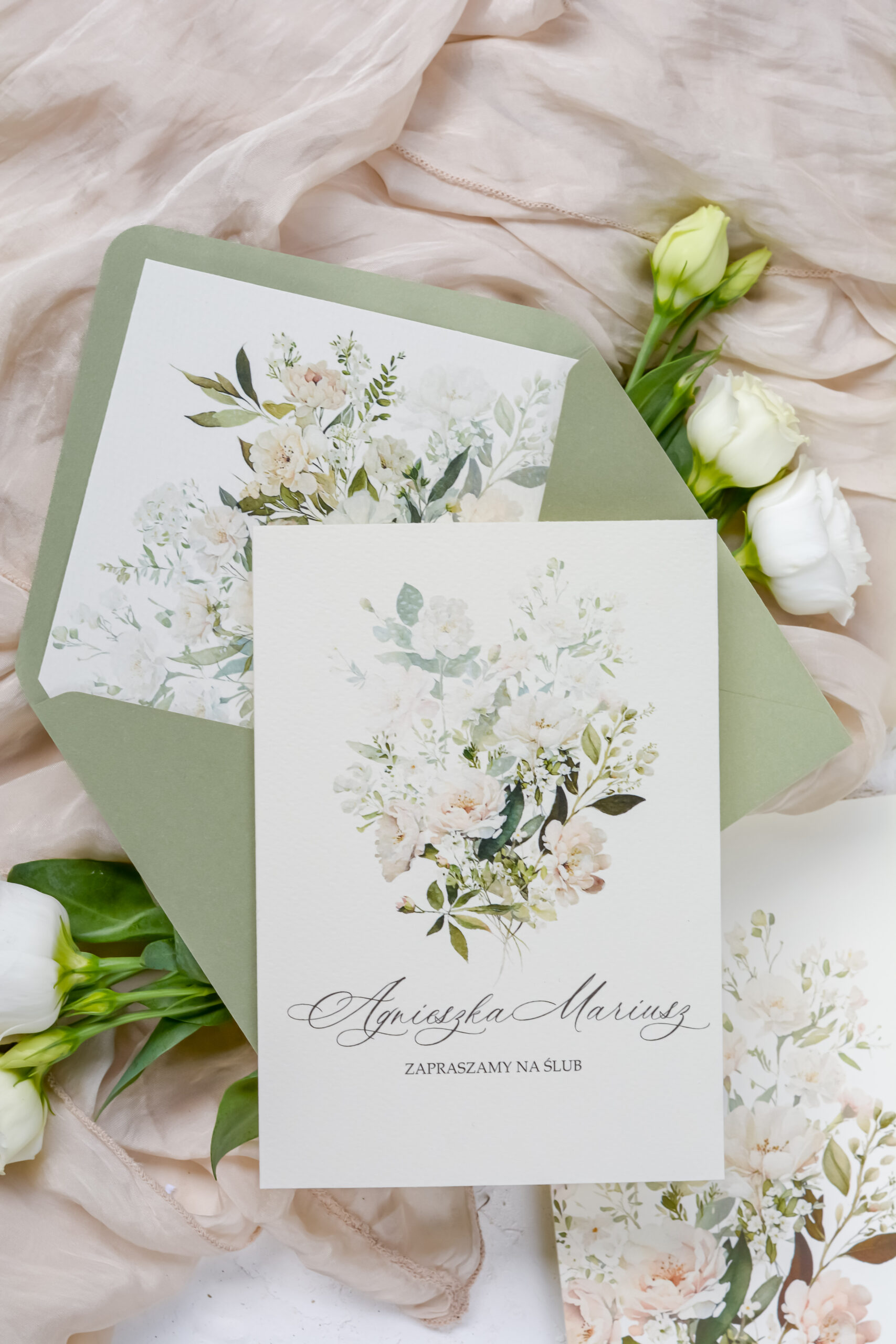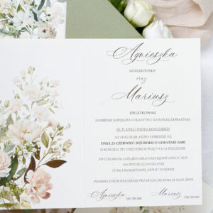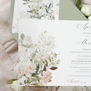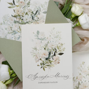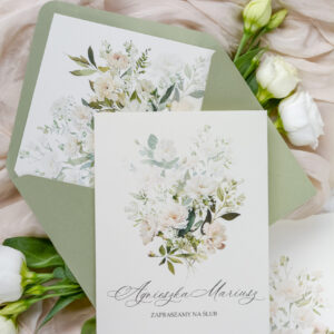 Zielone zaproszenia ślubne z motywem kwiatowym Wz-163
