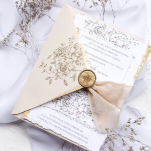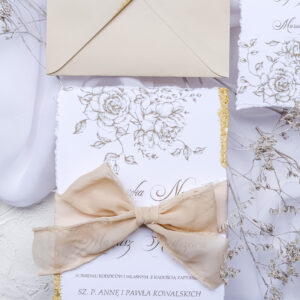 Beżowe, romantyczne zaproszenia ślubne z motywem kwiatowym Wz-176