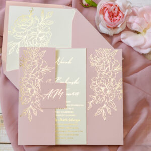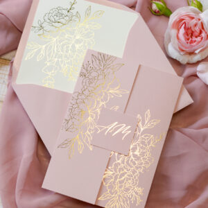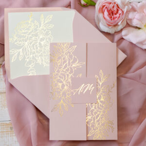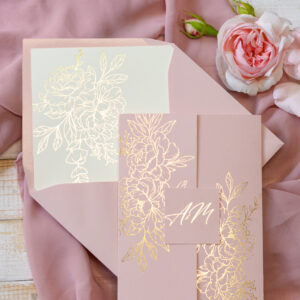 Różowe zaproszenia ślubne z tłoczeniem Wz-178